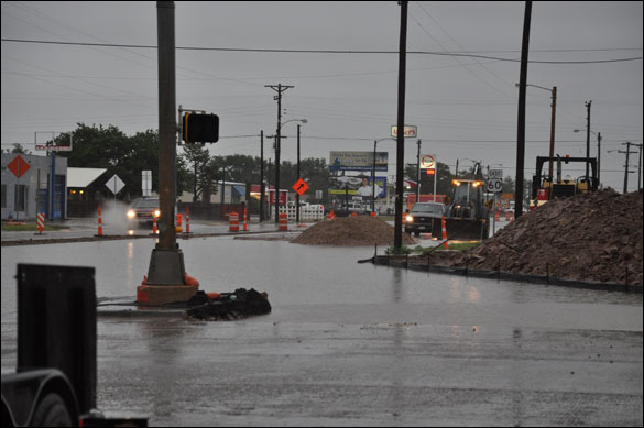 Main Street and Hwy. 60 turned into a miniature Reeve Lake during the recent rains. There were reports of at least one unlucky motorist taking an unexpected plunge in the deep water. A TxDOT contractor crew has been busy grinding away on the south side of Hwy 60 from Washington to Summit in preparation to pour concrete on that stretch of highway. The intersection of Hwy 60 and Main, plus restricted access to Euclid and Cleveland have caused folks to find alternate creative routes to move about town. After the south side is finished the workers will move to the north side of Hwy 60. The job is expected to take four months or longer.