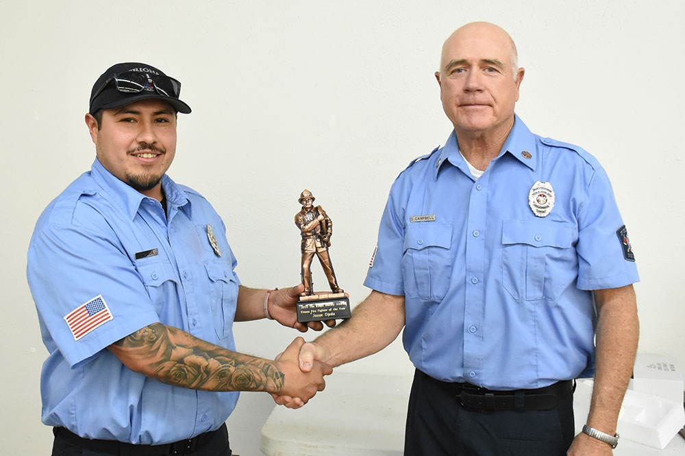 Fire Fighter of the Year — Josue Ojeda was presented The Ralph Shirley Award as the 2025 Friona Fire Fighter of the Year by Fire Chief Danny Campbell.