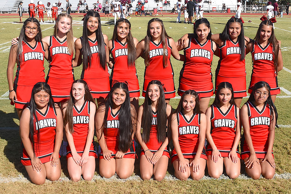 8th Grade Cheerleaders — Back Row (l-r) Genesis Aguirre, Sophie Lewellen, Kamila Moreno, Sarina Amaya, Karleigh Rangel, Avril Soltero, Adamari Amaya, and Angeliz Castillo. Front Row (l-r) Diana Ordonez, Ella Rector, Sophia SanMiguel, Preslie Goyne, Mya VanSommeren, Lidia Chic, and Sindy Lopez.