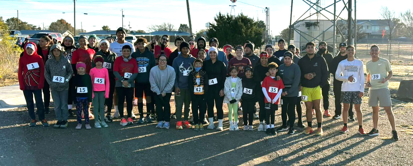 The Friona Run Club hosted its first annual Turkey Trot on Thanksgiving Day morning at the Clarence Monroe Community Center. The 5K Run/Walk was a success with over 45 individuals participating in the fun. There were many local runners as well as visitors from out of town and organizers were happy to see the community come together for the inaugural event. Everyone received a medal and t-shirt and snacks were served.