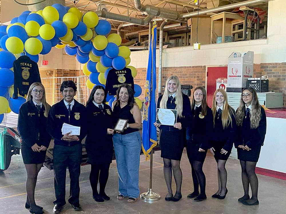 The Friona FFA Chapter won “Best School Float” and on hand to receive the recognition were FFA Officers (l-r) Shelby Lewellen, Avram Hernandez, Karen Morales, Aubree Bunker, Ivy Schueler, Stevie Herring, and Kyleigh Stephens.